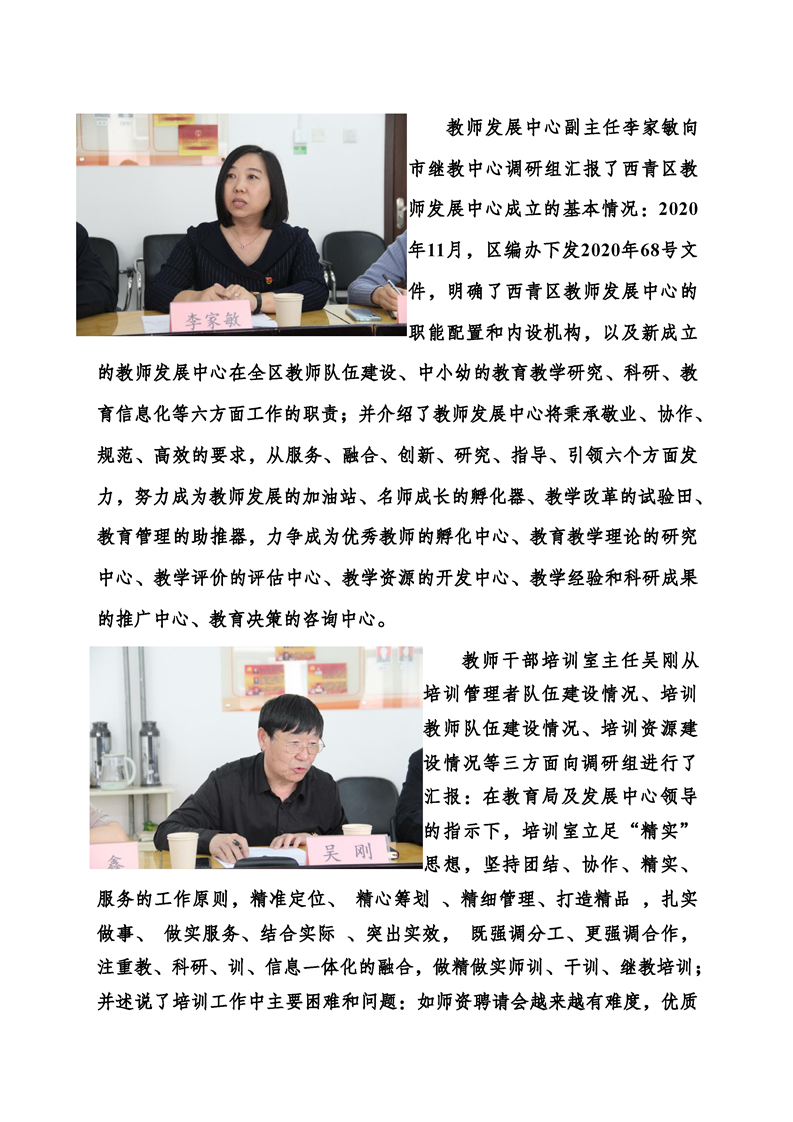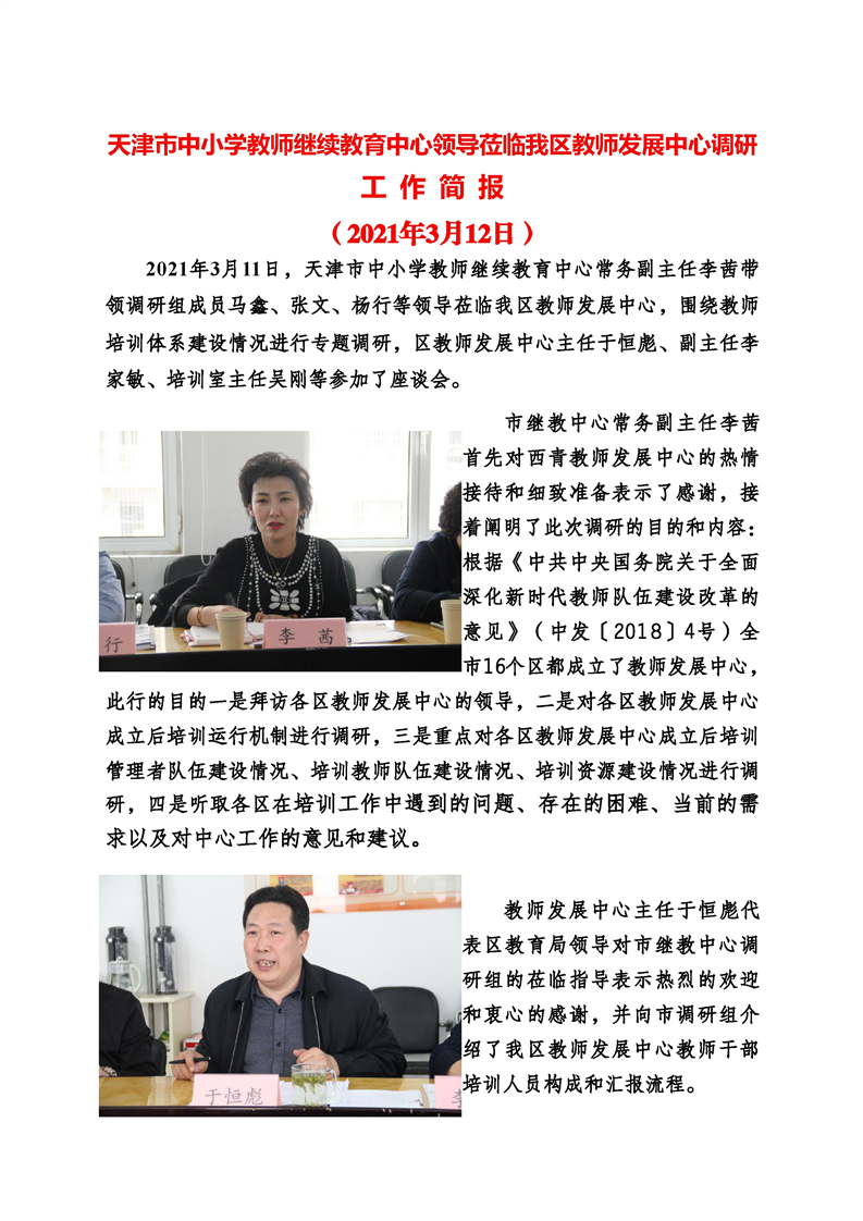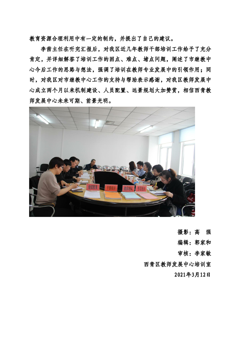 天津市中小学教师继续教育中心领导来我区教师发展中心调研工作简报