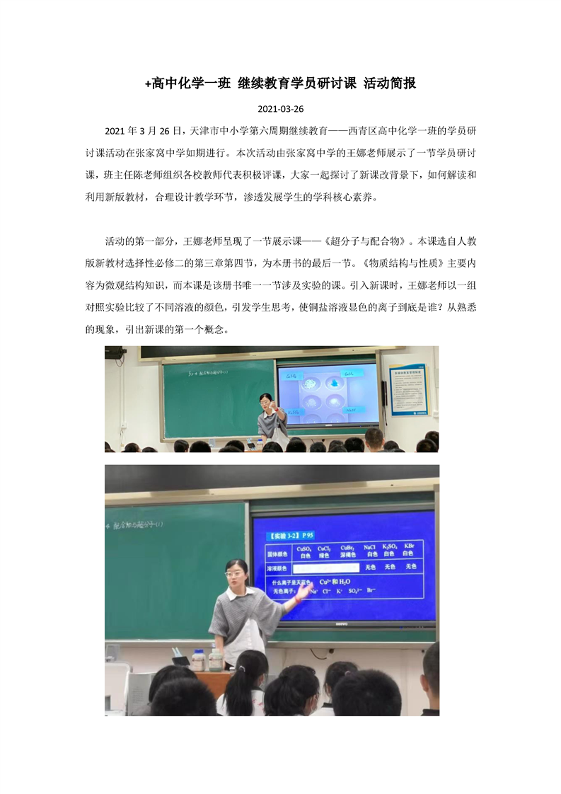 第六周期继续教育高中化学班教学实践课简报