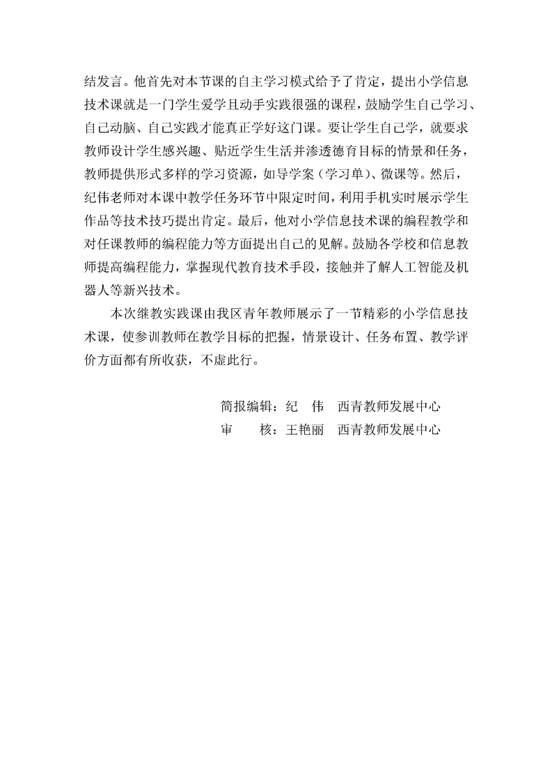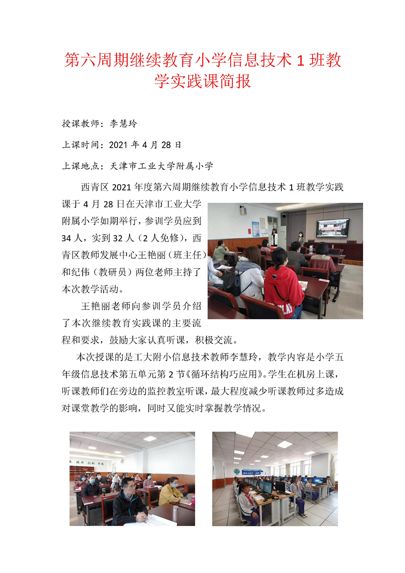 第六周期继续教育小学信息技术班教学实践课简报